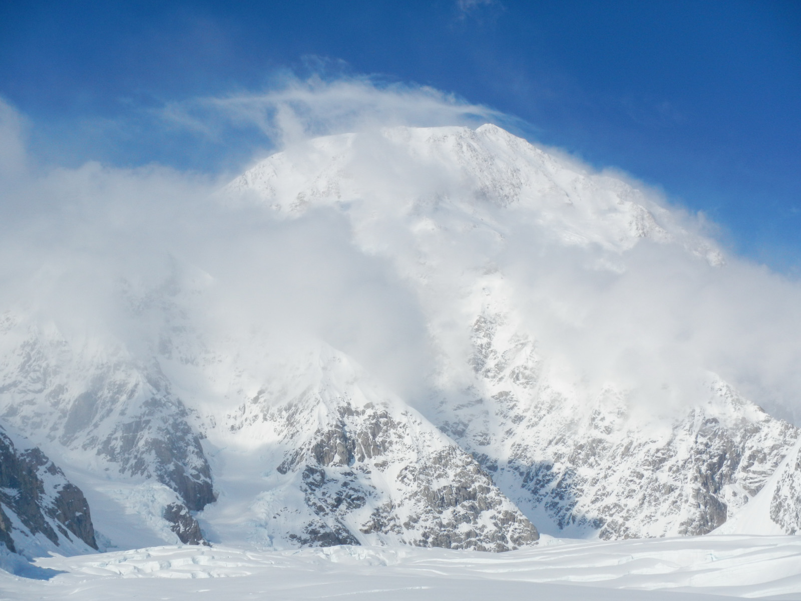 Out of snow we built a walled WC, with raised seating area, arm rests, protection from prevailing winds and a great view too! Our best views were of Ski Hill (our route ahead), panning over to views of Denali’s peak itself, and further on, the valley of death which avalanched regularly and on a colossal scale.