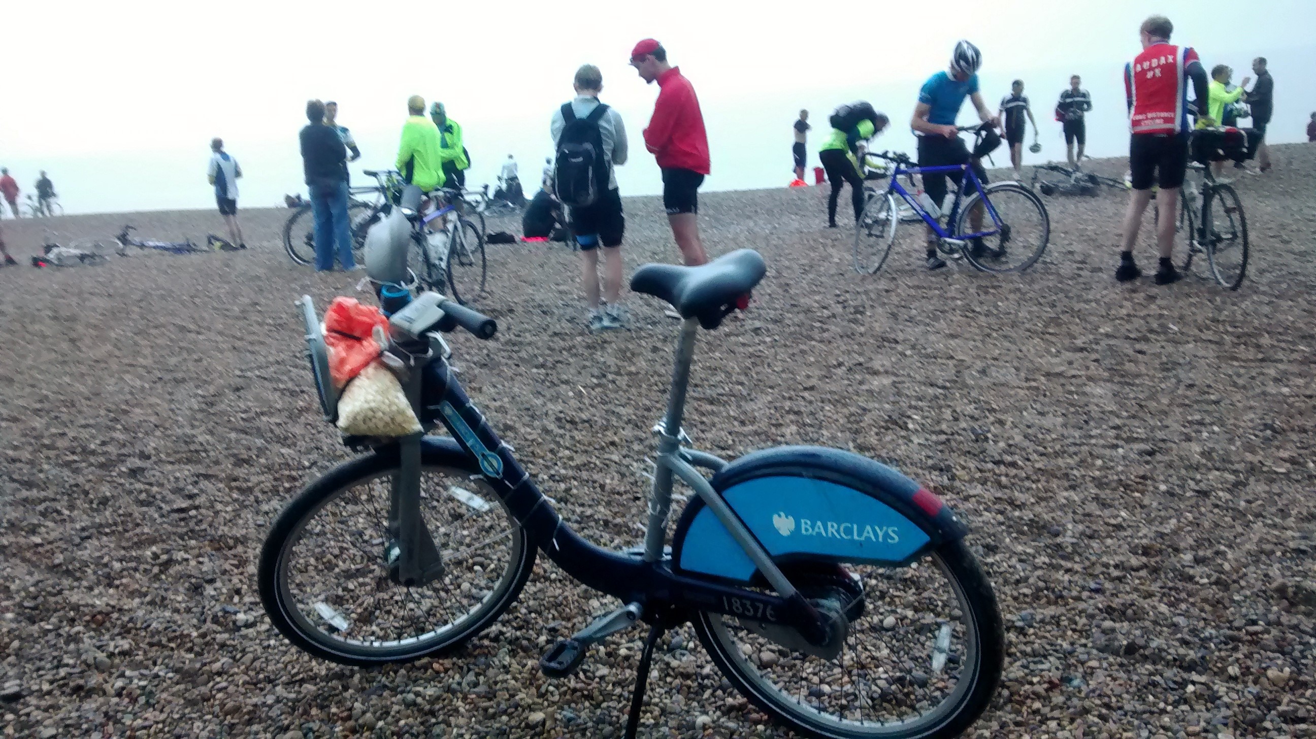 Last weekend I decided to ride, for the second time, the Dunwich Dynamo – a 120ish mile bike ride from London Fields in Hackney, London, overnight to the beach at Dunwich, about 30 miles north of Ipswich. This is not a cyclosportive that you pay to enter, there’s no chip timing or stations with energy gels: this ride is all about camaraderie and the journey itself. The main difference between my ride last year, which ended prematurely with a slashed tyre, and this year, is that this year I decided at the last minute (on the Wednesday before, to be precice), to ride it on a Boris bike.